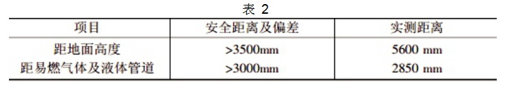 其中距地面高度實測值已經滿足標準,但是與燃氣體的距離太近,容易產生起火,一旦發生起火事件,那么后果是十分嚴重的。在檢測的過程,還發現有一個液體管道是后來加上去的,與原裝的配件存在偏差,并且在安裝的時候沒有考慮安全距離的問題,從而加劇了安全隱患的數值。